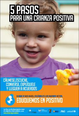 La campaña Eduquemos en positivo, promueve el desarrollo integral de niñas y niños en un ambiente positivo a través de cinco sencillos pasos: cálmese, escuche, converse, explique y llegue a acue